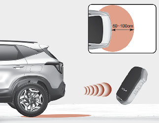 The smart tailgate operates with a welcome alert if the smart key is detected within 50 ~ 100 cm (20 ~ 40 inches) from the tailgate.
