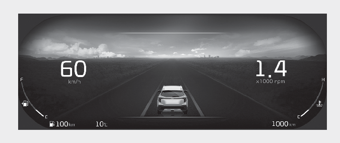 Theme A/B/C is the basic theme of the full LCD type cluster and provides different graphic styles depending on drive mode.