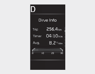 The trip computer mode displays information related to vehicle driving parameters including fuel economy, tripmeter information and total driving time.