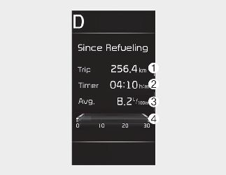 After refueling more than 6 liters (1.6 gallons) and driving over 1 km/h, the Since Refueling will reset to default automatically.