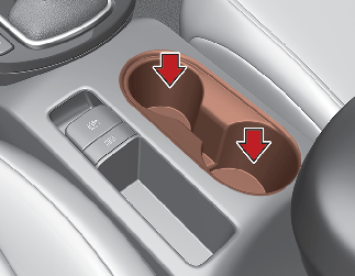 • To reduce the risk of personal injury in the event of sudden stop or collision, do not place uncovered or unsecured bottles, glasses, cans, etc., in the cup holder while the vehicle is in motion.