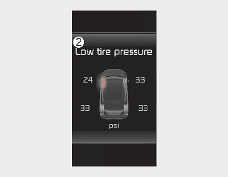 2. Low tire pressure position telltale (Shown on the LCD display)