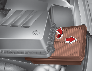 You can clean the filter when inspecting the air cleaner compartment. Clean the filter by using compressed air.