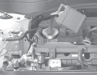 Use a funnel to help prevent oil from being spilled on engine components. Use only the specified engine oil. (Refer to More Details.)