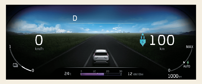 A teljes LCD (B típusú) műszercsoport esetén az információ az időjárási információk szolgáltatójától, GPS-en keresztül kapott információk alapján jelenik meg. Az információ a GPS-vétel állapotától függően eltérhet a térségben tapasztalható aktuális időjárástól. Ha a GPS-en keresztül nem érkezik információ (pl. nem fizetett elő a KIA Connect szolgáltatásra), akkor a műszercsoport "napos" időjárást és "éjszakai" időt jelenít meg.