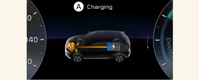 When the vehicle is stopped, the high-voltage battery is charged up by the engine.