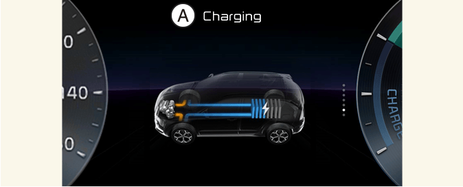 The hybrid system informs the drivers its energy flow in various operating modes. While driving, the current energy flow is specified in 11 modes.