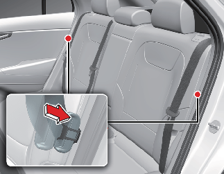 Do not allow the seat belt webbing or buckle to become pinched or caught in the rear seat.