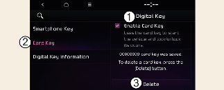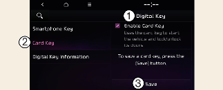 When there is a digital key (card key) already saved in the vehicle, the Save menu is disabled. If you want to save a digital key again, refer to More Details and follow the deleting procedure first before saving a digital key.