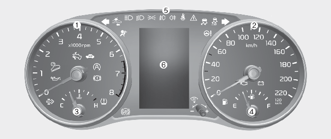 * Zestaw wskaźników w pojeździe może być inny niż na ilustracji. Więcej szczegółów można znaleźć w rozdziale Więcej informacji.