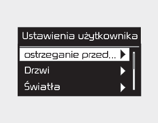 W tym trybie można zmieniać ustawienia zestawu wskaźników, drzwi, oświetlenia itp.