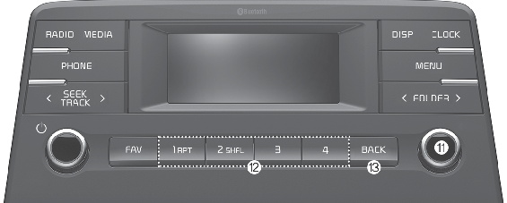 Podczas odtwarzania multimediów obrócić pokrętło, aby wyszukać utwór/plik (z wyjątkiem trybu audio Bluetooth).