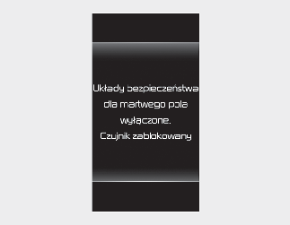 W takiej sytuacji w zestawie wskaźników zostanie wyświetlony komunikat ostrzegawczy „Blind-Spot Safety system disabled. Radar blocked” (System monitorowania martwego pola wyłączony. Radar zasłonięty).
