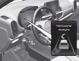 Sterowanie hamulcami zostanie zakończone po zatrzymaniu pojazdu w wyniku hamowania awaryjnego przez około 2 sekundy.