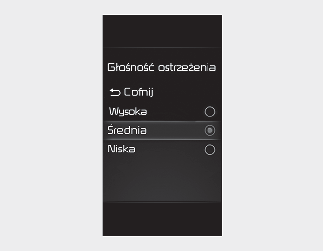 Zmiana głośności ostrzeżenia może spowodować zmianę głośności ostrzeżenia innych systemów wspomagania kierowcy.
