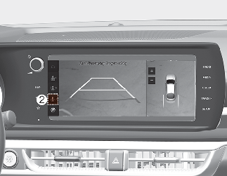 عند الضغط على أحد أزرار نظام المعلومات والترفيه (3) بدون نقل الترس إلى الوضع R (رجوع)، يتم إيقاف تشغيل نظام مراقبة الرؤية المحيطية.