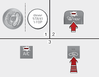 أثناء الضغط على زر تكييف الهواء (A/C)، اضغط على زر التحكم في سحب الهواء لما لا يقل عن 5 مرات في غضون 3 ثوانٍ.