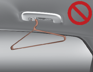 لا تُعلق أشياءً أخرى مثل الحاملات أو الأشياء الصلبة باستثناء الملابس. أيضًا لا تضع أشياء ثقيلة أو حادة أو قابلة للكسر في حافظات الملابس. في حالة وقوع حادث أو عند انتفاخ الوسادة الهوائية الستائرية، قد تسبب تحطم السيارة أو الإصابة الجسدية.