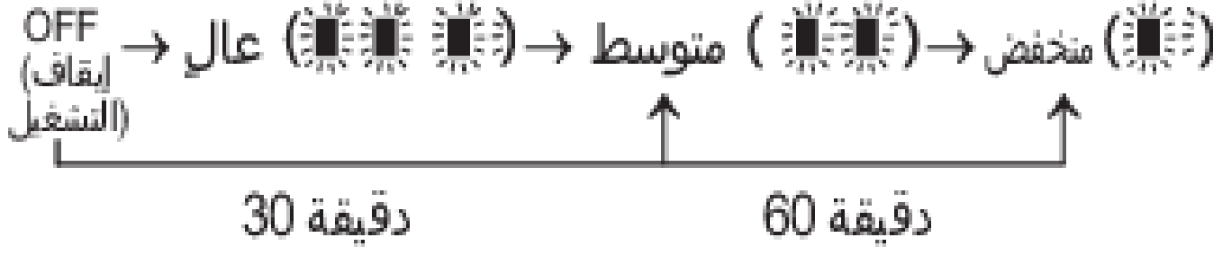 في كل مرة تقوم فيها بالضغط على الأذرع/ المفتاح، ستتغير إعدادات درجة حرارة المقعد كما يلي: