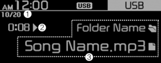 معلومات الأغنية (شاشة الوسائط): حدد معلومات مثلFolder/ File (مجلد/ ملف) أو Artist/Title/Album (مغني/اسم الأغنية/ ألبوم)للعرض عند تشغيل ملفات MP3.