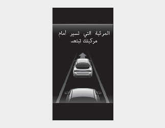 عندما تغادر المركبة الأمامية من نقطة وقوف، سيُخطر إنذار مغادرة المركبة الأمامية السائق بعرض رسالة "Leading vehicle is driving away" (المركبة الأمامية تتحرك) على لوحة العدادات وسيصدر تحذير صوتي.
