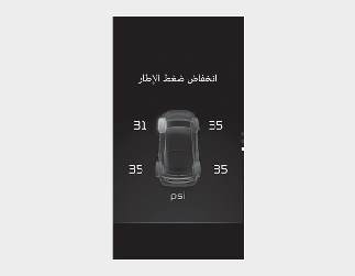 لا تقوم بقيادة السيارة والإطارات منخفضة الضغط. يتسبب ضغط الإطارات شديد الانخفاض في ارتفاع درجة الحرارة بشكل مفرط وتلفها، وهو ما يجعل السيارة غير ثابتة، وينجم عن ذلك فقدان التحكم في السيارة وزيادة مسافات الفرملة.