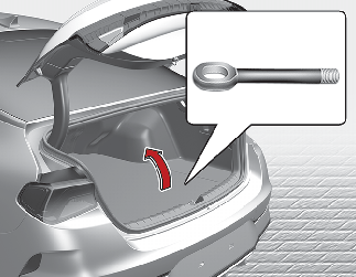افتح صندوق السيارة وأخرج خطاف الجر من حاوية الأدوات.