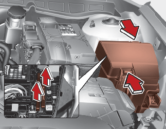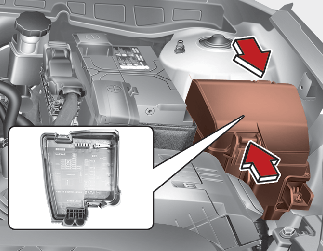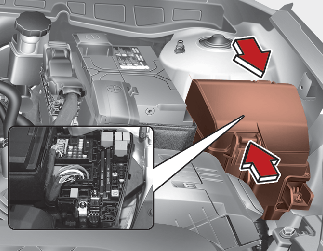 بعد التحقق من لوحة المصاهر في حجرة المحرك، ركّب غطاء لوحة المصهر بإحكام من خلال صوت النقر المسموع.