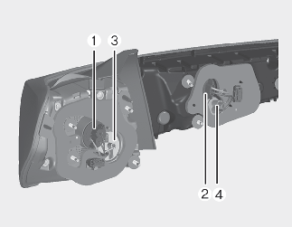 استبدال مصباح التوقف والمصباح الخلفي، أو مصباح التوقف، أو مصباح إشارة الانعطاف، أو مصباح الرجوع للخلف من نوع البصيلة، (مصباح المجموعة الخلفية من النوع أ وب) (إن وجد)