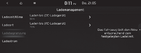 Der Ladezustand kann in Schritten von 10 % geändert werden.