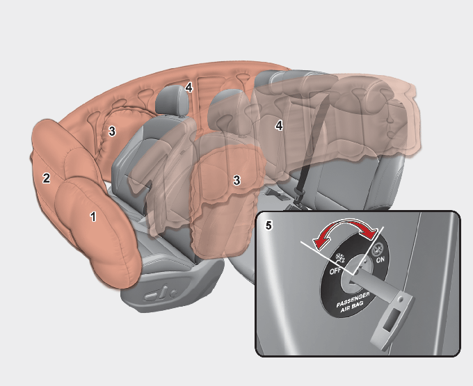 * Die tatsächlich in Ihrem Fahrzeug vorhandenen Airbags und Sitze können von dieser Abbildung abweichen.