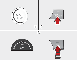 Halten Sie die Taste für die Klimaanlage (A/C), und drücken Sie diese mindestens 5-mal innerhalb von 3 Sekunden.