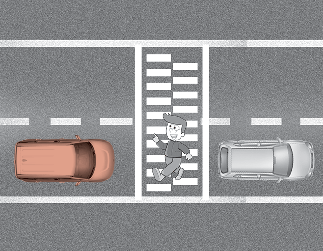 In diesem Fall müssen Sie einen Sicherheitsabstand einhalten und gegebenenfalls das Bremspedal treten, um die Fahrgeschwindigkeit zu reduzieren und den Sicherheitsabstand herzustellen.