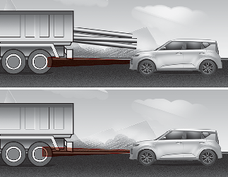 Das SCC kann möglicherweise auf Gefällstrecken oder im Anhängerbetrieb den korrekten Abstand oder die eingestellte Geschwindigkeit nicht einhalten.