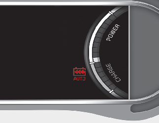Wenn der Frontradarsensor das vorausfahrende Fahrzeug erkennt, wird die Meldung „AUTO“ blau angezeigt. Die Stufe der Regenerativbremse wird automatisch je nach dem Fahrverhalten des vorausfahrenden Fahrzeuges geregelt. Die Stufe wird durch Pfeile angezeigt.