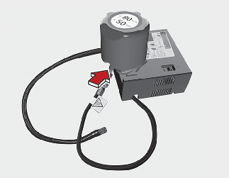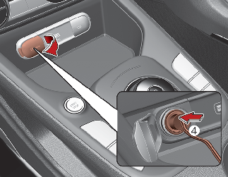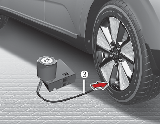 Schließen Sie den Kompressor mit dem Kabel und den Verbindern (4) an die Fahrzeug-Steckdose an.