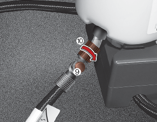 Schrauben Sie den Anschlussschlauch (10) auf den Anschluss der Dichtmittelflasche.