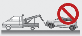 Schleppen Sie das Fahrzeug nicht mit einer Seilschlinge ab. Verwenden Sie eine Hubbrille oder einen Pritschenwagen.
