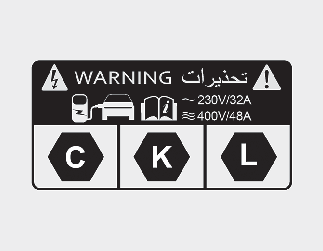 Prüfen Sie nach Öffnen der Ladeklappe das Ladesymbol unten auf dem Warnschild.