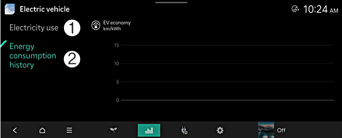 Istoriju potrošnje električnog vozila možete da proverite pomoću datuma i rastojanja prethodne vožnje. Najefikasnija zabeležena ekonomičnost električne energije biće označena ikonom.