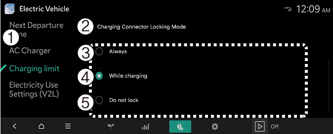Konektor se zaključava kada se konektor za punjenje poveže sa ulazom za punjenje. Konektor je zaključan dok vozač ne otključa sva vrata. Ovaj režim može da se koristi za sprečavanje krađe kabla za punjenje.
