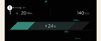Nakon početka punjenja, na instrument tabli će biti prikazano procenjeno vreme punjenja tokom približno 1 minuta. Ako otvorite vrata vozača prilikom punjenja, procenjeno vreme punjenja takođe će biti prikazano na instrument tabli tokom 1 minuta.