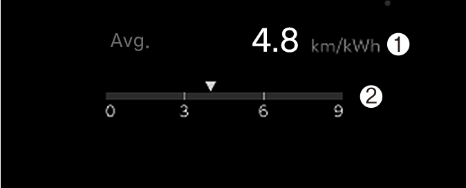 Prikazuje trenutnu ekonomiju električne energije u poslednjih nekoliko sekundi kada je brzina vozila veća od približno 10 km/h (6 mph).