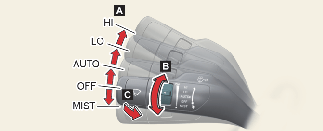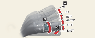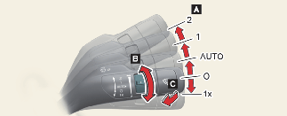 Okrenite prekidač za kontrolu brzine (B) da biste podesili brzinu brisača.