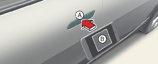 Za pametne telefone koji podržavaju UWB, čak i ako ne postavite svoj pametni telefon na podlogu za autentifikaciju u vozilu (podloga za bežično punjenje) (A), ako unesete pametni telefon u vozilo možete bežično da registrujete digitalni ključ.