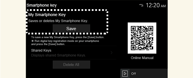 Kada već postoji digitalni ključ (pametni telefon) koji je već sačuvan u vozilu, Obrišite sve će biti prikazano na ekranu menija Ključa na pametnom telefonu na infozabavnom sistemu, a Obrišite će biti prikazano na ekranu Moj ključ na pametnom telefonu. Ako želite ponovo da sačuvate digitalni ključ, Još detalja.