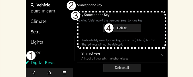 Ako se digitalni ključ (pametni telefon) obriše na pametnom telefonu, briše se i digitalni ključ sačuvan u vozilu.