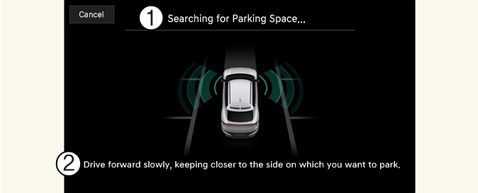 Čak i ako se potraga za prostorom završi, senzori neće moći da detektuju predmete u mrtvom uglu. Vozač mora direktno da proveri prostor mrtvog ugla i da zatim nastavi sa korišćenjem funkcije.