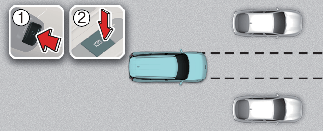 Kada koristite metodu (1) za daljinsko kretanje napred dok je vozilo isključeno, pomoć pri daljinskom pametnom parkiranju prepoznaje to kao situaciju izlaska. Na približno 4 metra ispred, vozilo proverava parking linije, ljude, životinje ili objekte oko sebe i upavlja volanom u skladu sa uslovima ispred sebe.