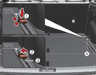 Per fissare i bagagli, sollevare il gancio (2) verso la metà del vano bagagli.